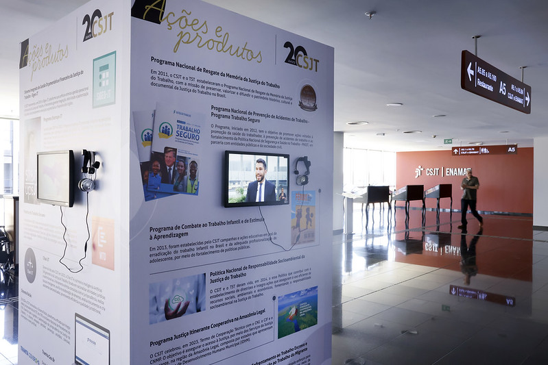 Entre os destaques da mostra está um totem interativo, com quatro monitores exibindo ações e produtos desenvolvidos pelo CSJT ao longo dos anos. O material apresenta, , por exemplo, depoimentos e informações sobre temas sociais da qual o conselho coordenou e tem coordenado nesse periodo, como a cultura do trabalho seguro e descente, o combate ao trabalho infantil e o estímulo a aprendizagem, além da da Política de Acessibilidade e Inclusão das Pessoas com Deficiência e o combate ao tráfico de pessoas.